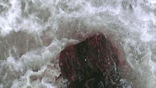 童心にかえって、波と戯れてました。砂浜に転がってた流木に乗ってたから、油断してました。マズイと思った時にはすでに遅し!靴はぐっしょり。ジーパンも膝近くまで濡れちゃいました。