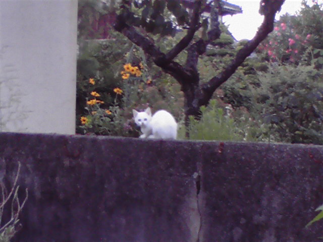 野良猫ちゃんですが。これは子猫。母猫も白いわ。母猫は近寄ると、「フー!!」て、怖いよ。