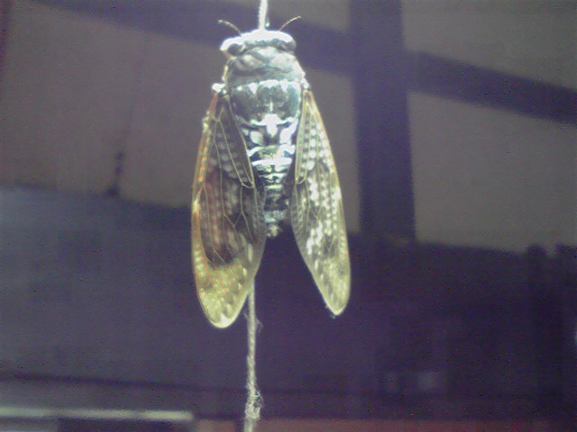 朝からとびこみです。蛍光灯のほっそい紐にぶら下がって。このあと蛍光灯に向かっての体当たりすごいので、消した。暗くなったし、明るい外に行けば良いのに、壁に止まった。