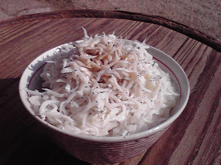 昨日手に入れたシロメ。昨夜も食べた!今朝はご飯にたっぷりのっけた。味付けの今朝の気分はぽん酢。