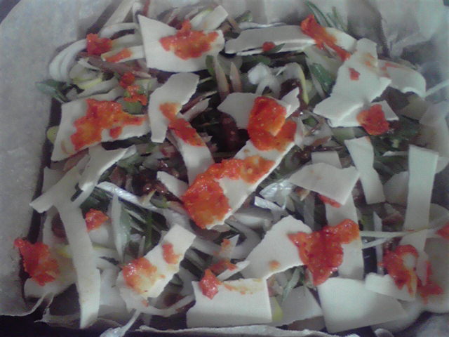 - ピーマン 長ネギ、等々具材をのっけた。
