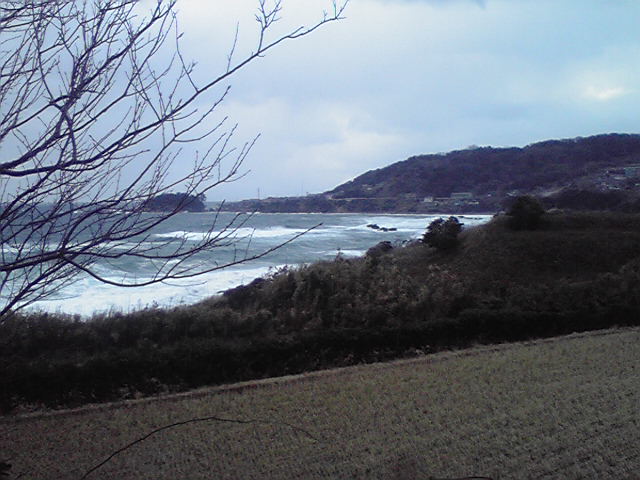 この日は本当に風が冷たくて・・。 いつも 行かない場所から海を見てみました。ときおり 体がゆらっとする位の強い風が吹いて、おっとっと・・でしたよ。